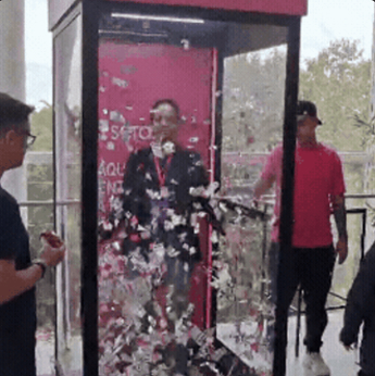 Cabine de vento personalizada onde os participantes capturavam “mini boletos” para trocar por brindes, conectando a marca à ideia de quitar dívidas de forma leve e divertida.